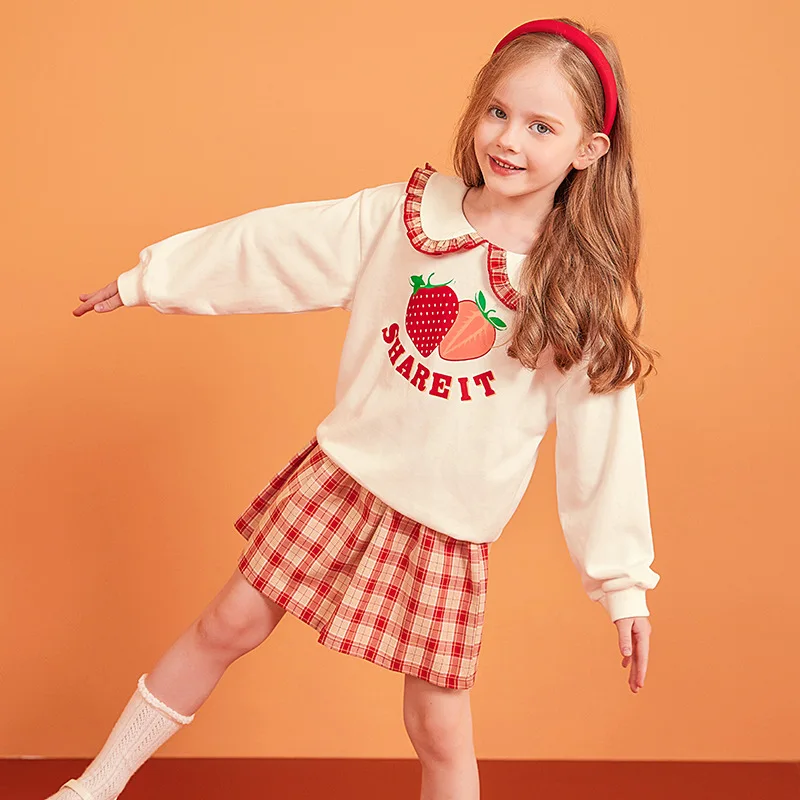 Повседневные комплекты для маленьких девочек, свитшот, клетчатая юбка, костюм из 2 предметов для маленьких девочек