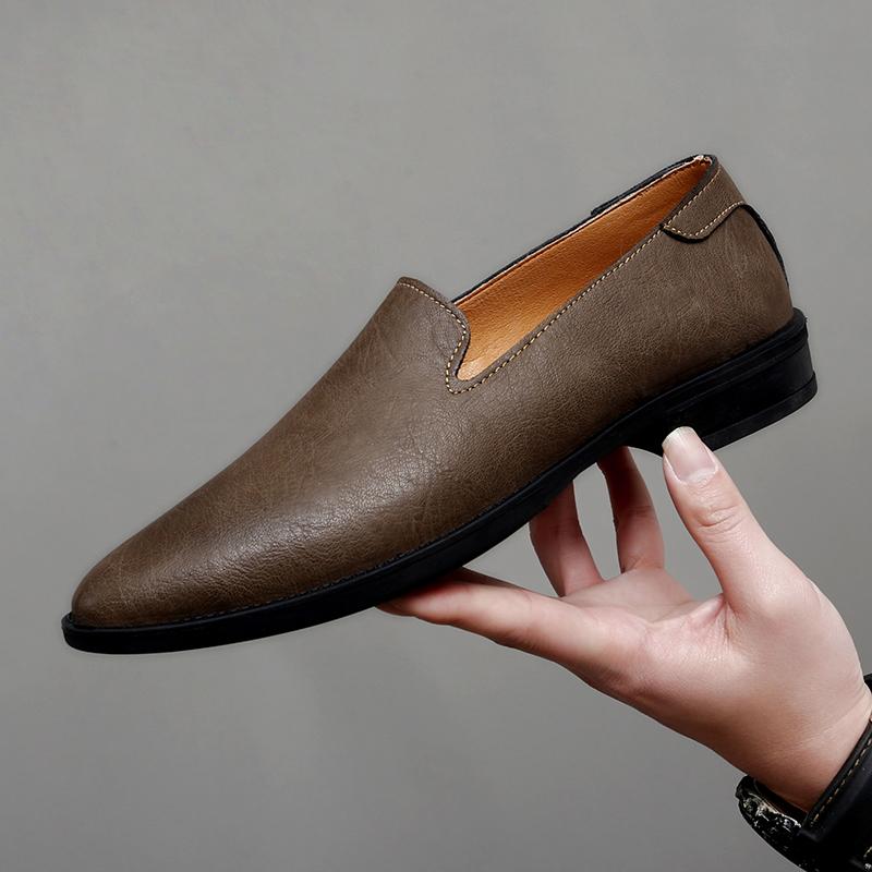 Повседневные мокасины для пар из цельной кожи на низком каблуке для дышащего повседневного делового наряда, парная обувь больших размеров 36-48 48 хаки