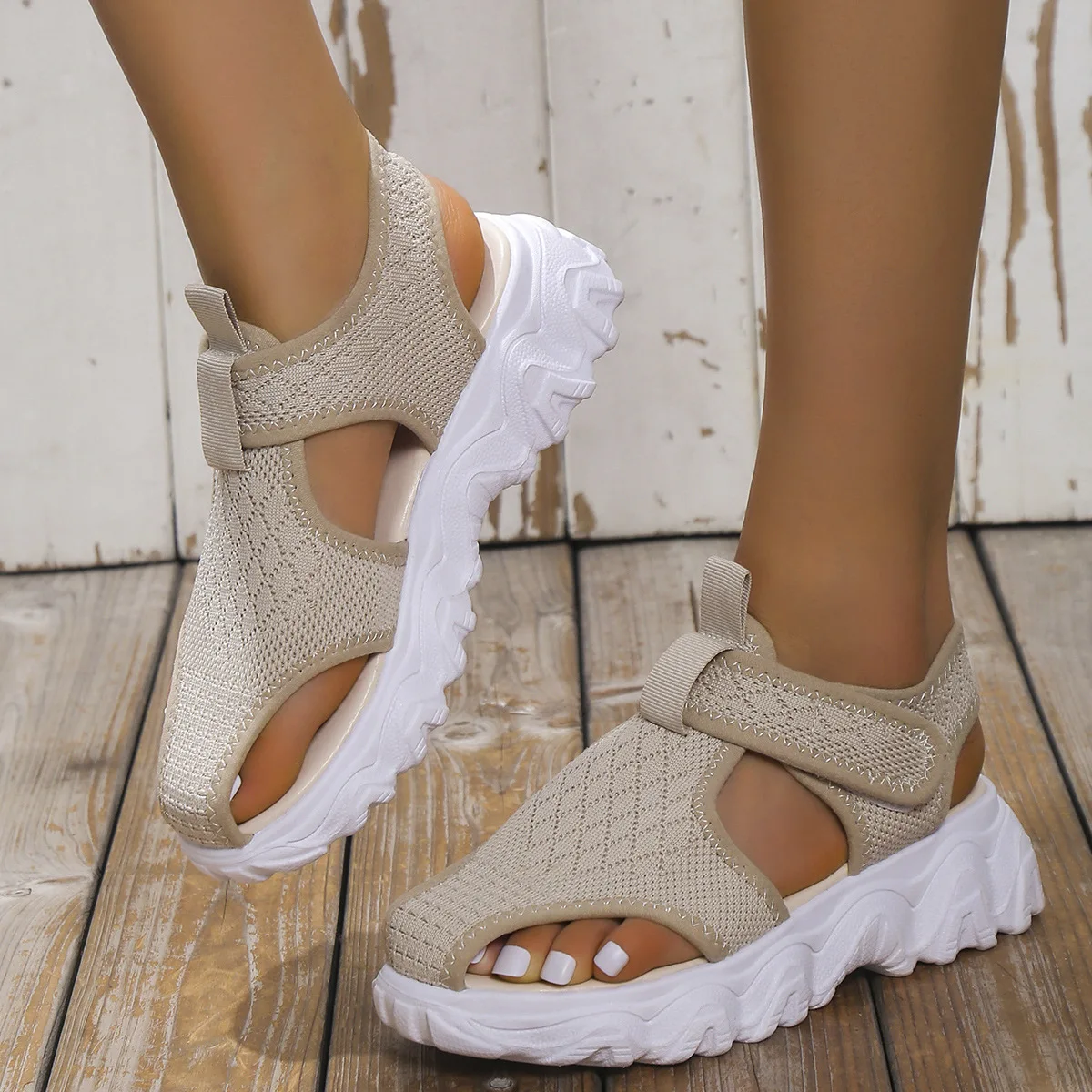 Повседневные сандалии на платформе, женские сандалии, летняя обувь, сетчатые однотонные сандалии с открытым носком, Бежевая обувь