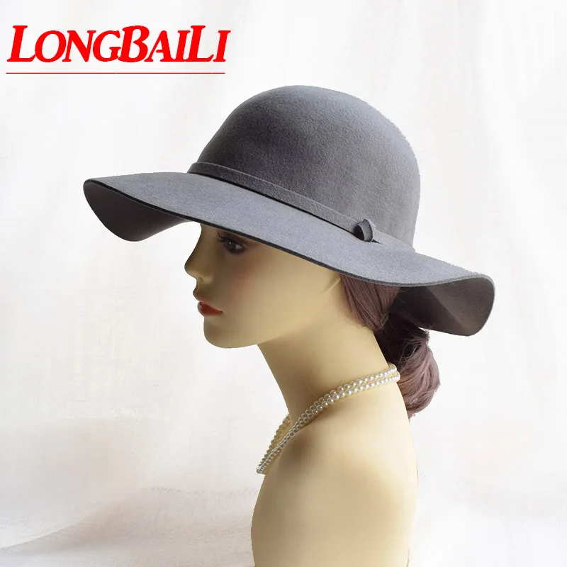 Повседневные шерстяные фетровые шляпы с широкими полями для женщин Chapeu, серые шляпы от солнца для женщин, бесплатная доставка, PWFE072