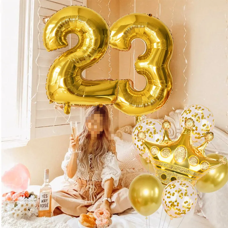 7Pcs Gold Number Foil Balloons Confetti Latex Balloon for Adult Kids Birthday Party Decoration 1st Birthday Girl Boy Baby Shower