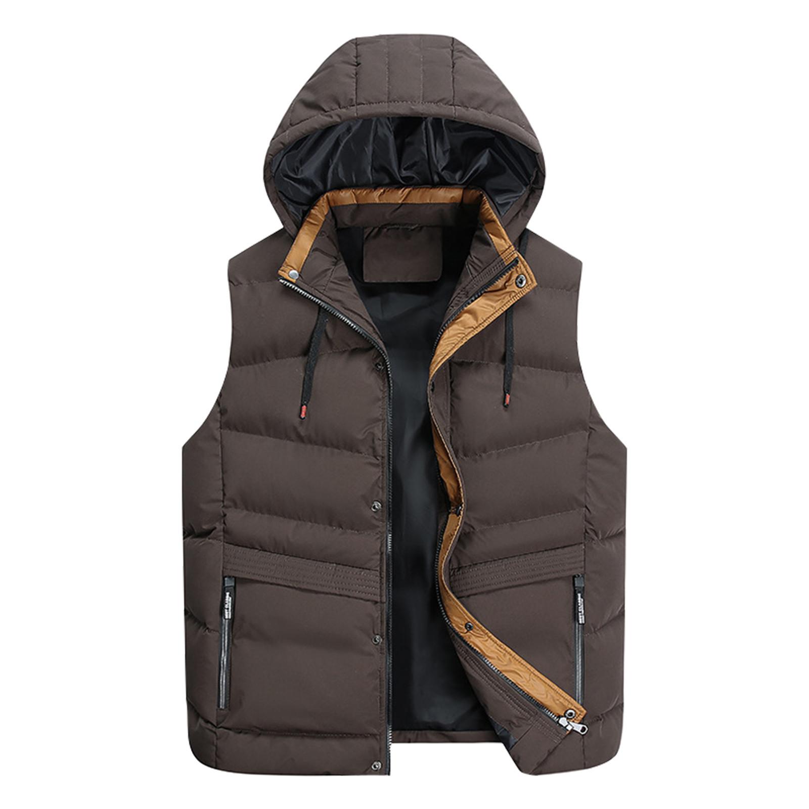 Повседневный мужской жилет, мужской свободный осенне-зимний теплый пуховый хлопковый жилет, пальто One size кофейный