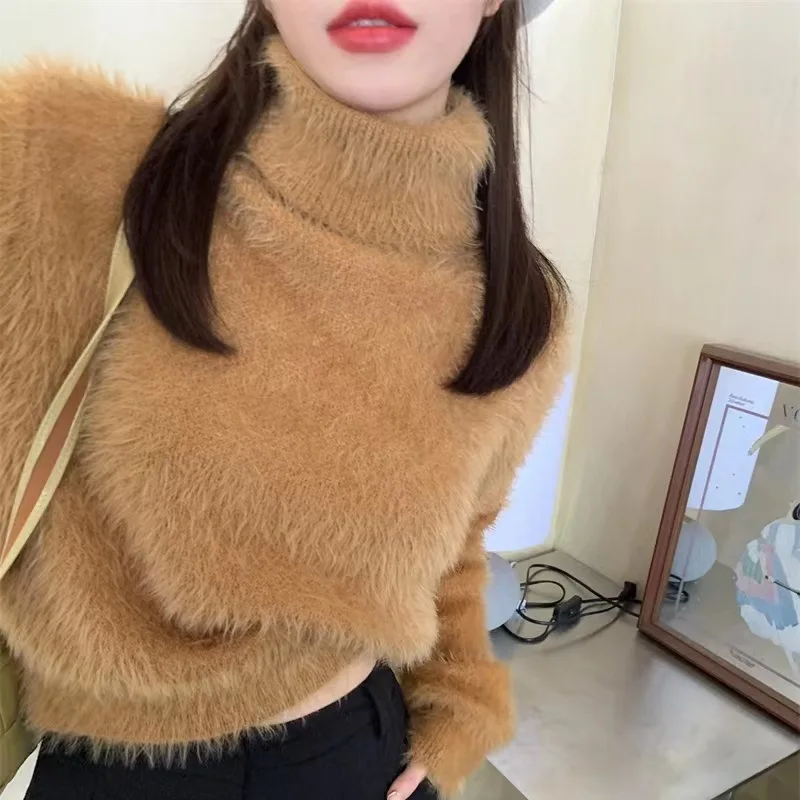Повседневный однотонный зимний базовый Серый с длинным рукавом и высоким воротником