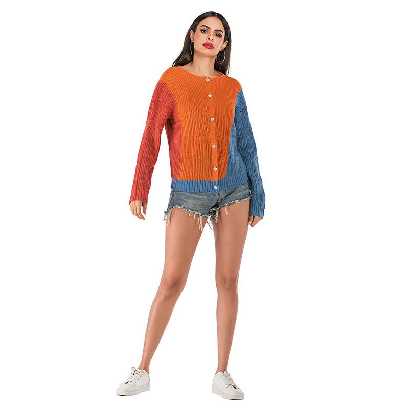Повседневный тренд, универсальный, осенний, цветной, контрастный, с круглым вырезом, с длинным рукавом, свободный, двухсторонний, вязаный свитер, куртка для женщин XL