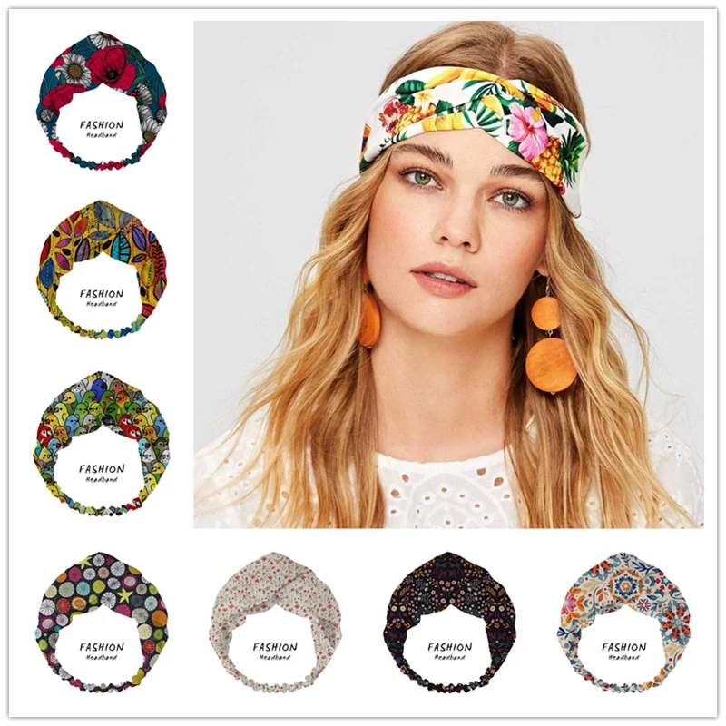 Повязка для волос Всесезонная женская, модный тюрбан с цветочным принтом, банданы, аксессуары для волос