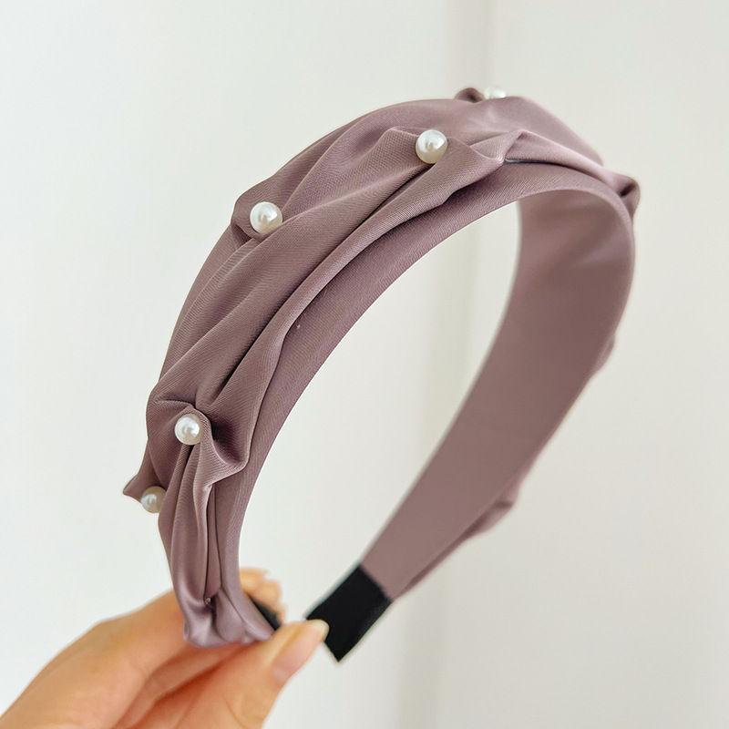 Повязка на голову для волос, плиссированный милый головной убор, аксессуары, однотонный жемчужный обруч для волос 17*13cm фиолетовый