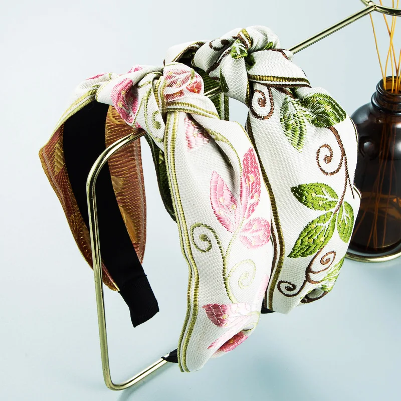 Повязка на голову женская широкополая с вышивкой, в этническом стиле