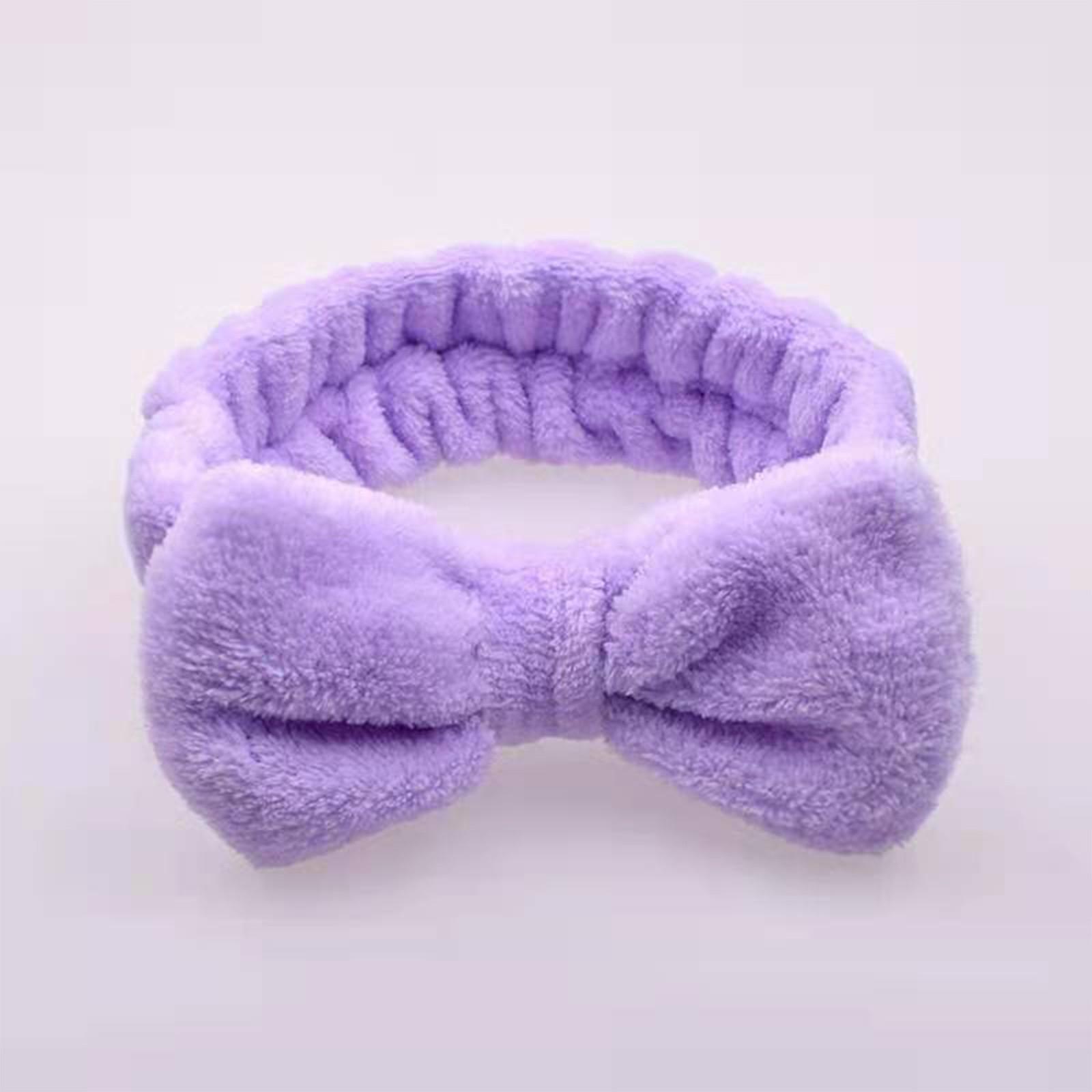 Повязка на голову с бантом, однотонная женская широкая повязка на голову с мытьем лица, плюшевая повязка на голову One Size фиолетовый