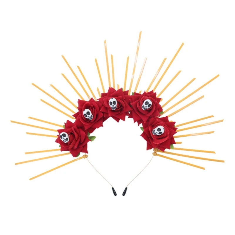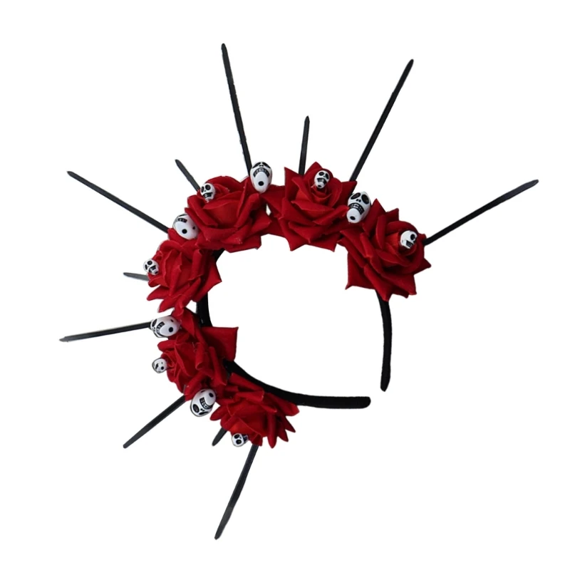 Headband for Women Skull Flower Halloween Headband Dark Series Hairband Tiaras Headwear Party Costume Hairhoop K3KF