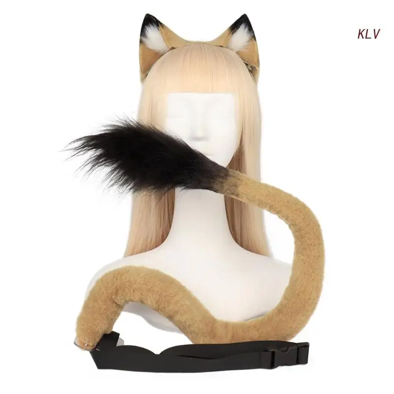 Повязка на голову с кошачьими львиными ушками и хвост из искусственного меха для Хэллоуина, аксессуары для костюмированной вечеринки, хвост с львиными ушками для взрослых