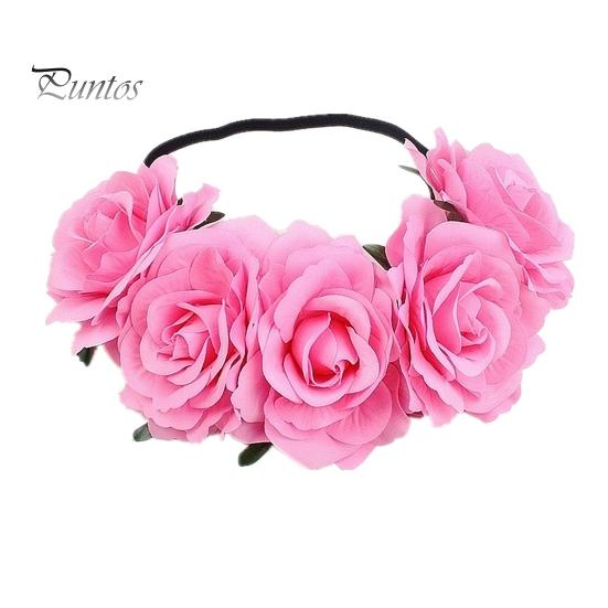 Повязка на голову с розами, обруч для волос ручной работы с 5 искусственными розами, высокая эластичная конструкция, обруч для волос в стиле бохо, праздничный декор розовый