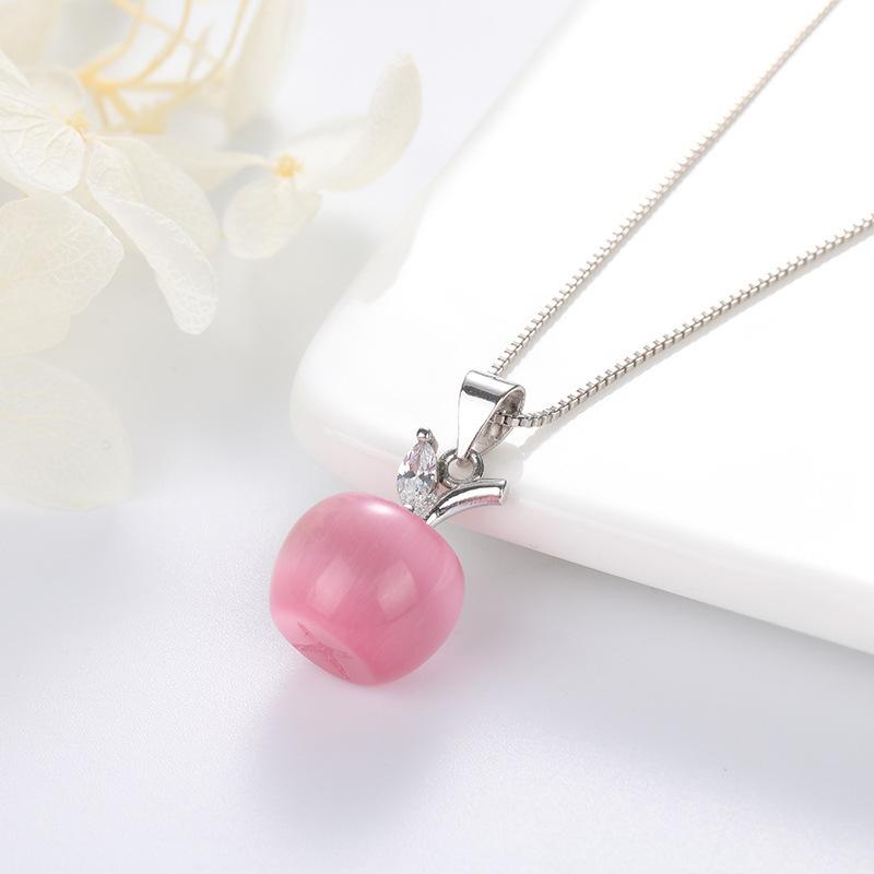 Подарок на День Святого Продленного Ожерелье с опаловым яблоком, посеребренная платина, популярные ювелирные изделия, подвеска с лунным камнем, женственность