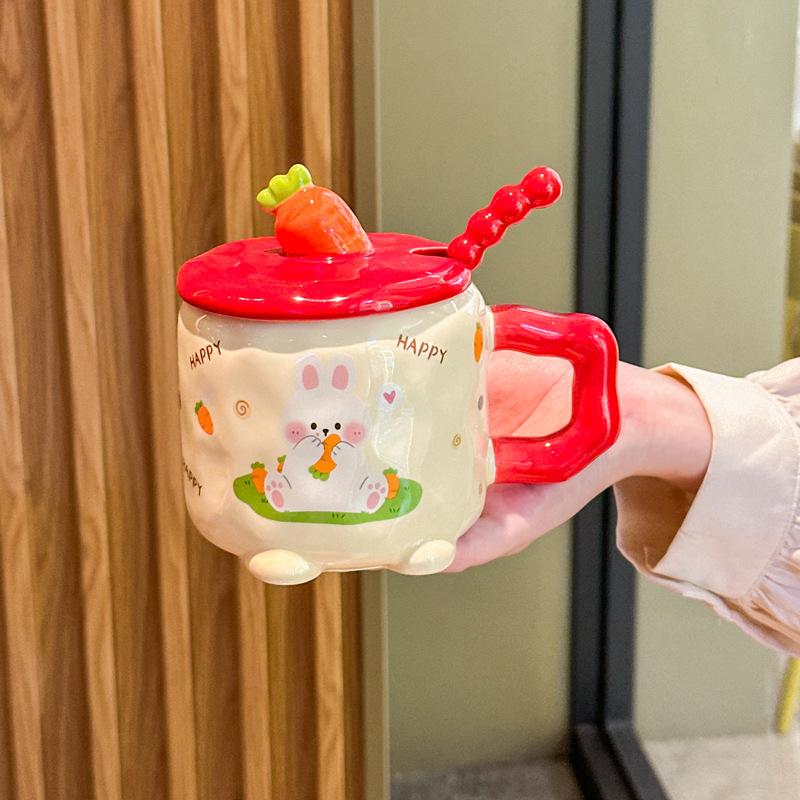 Подарок на день рождения для девочек Милая мультяшная керамическая кружка с изображением редиса и кролика с крышкой и ложкой сувенирный подарок для девушки подарочная коробка 401-500ml