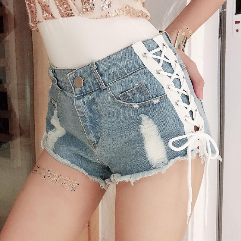 Women' Shorts Women' High Waist Moustache Effect Tassel Short Jeans Women Washed Vintage Pocket Denim Bandage Hole Booty Sexy, Black