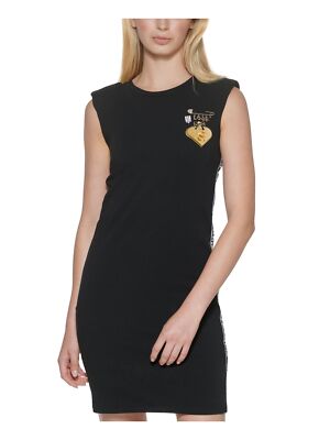 KARL LAGERFELD PARIS Женское черное короткое платье без рукавов с логотипом и тесьмой по бокам, Черный