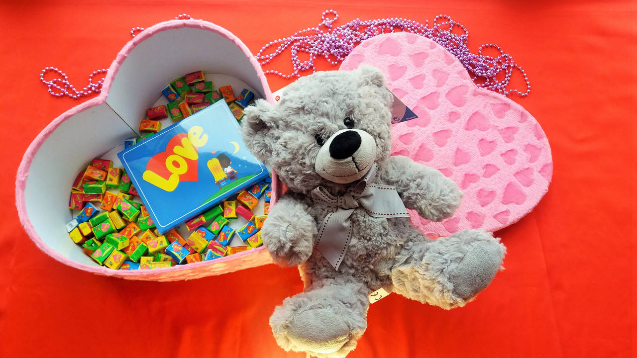 Подарочный набор Жвачки Love is плюшевый мишка шоколад