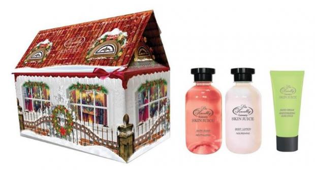Коробочка картонная "домик"; Пена для ванн восстанавливающая "Skin Juice", 270 мл; Лосьон для тела питательный "Skin Juice", 270 мл; Крем для рук увлажняющий с соком алоэ "Skin Juice" 75 мл
