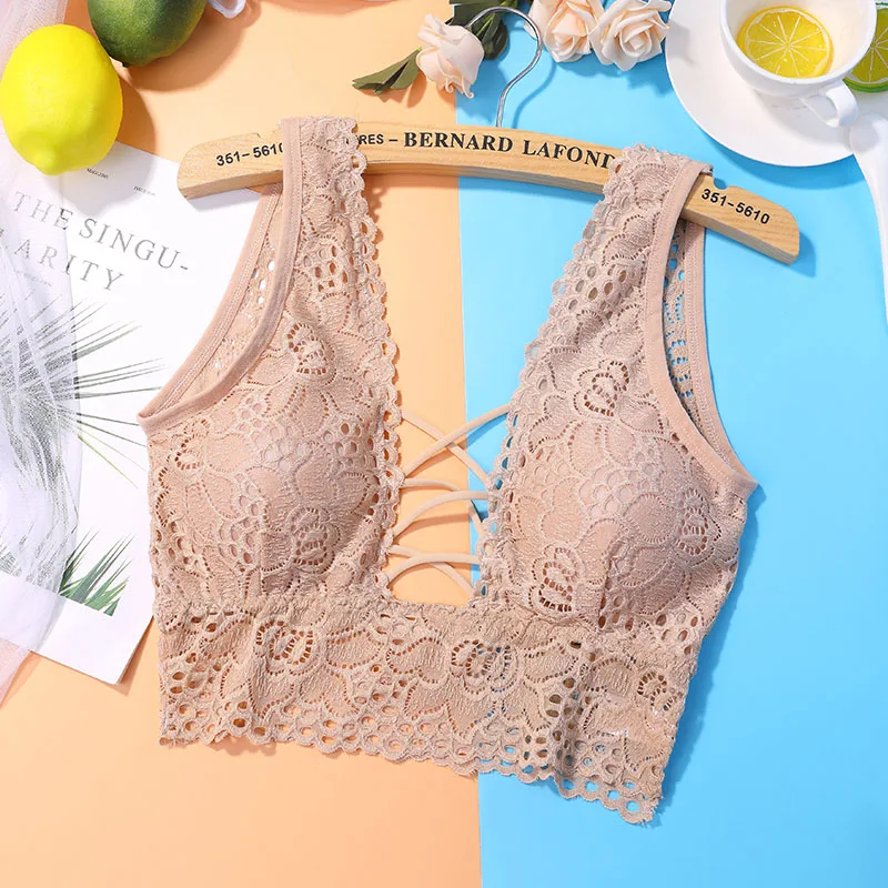 Lace Women Tube Top Cross Strap Sexy Wire Free Solid Color Bras Hollow Out Beauty Back Comfortable Fashion Tube Top