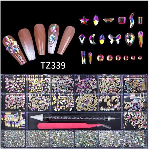 nail art decorations 1 box of 21 grid rhinestones set diy multi-shape glass crystal diamond decorative rhinestone, Silver;gold