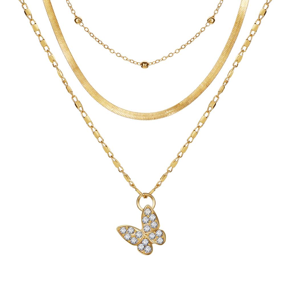 Подвеска-бабочка Роскошное элегантное ожерелье Темперамент Очарование Свитер-цепочка Комплект из трех частей ожерелья золотой