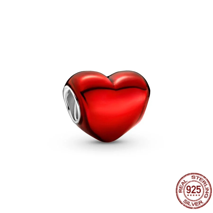 Подвеска-бусина из серебра 925 пробы, с металлическим розовым, фиолетовым, красным сердцем