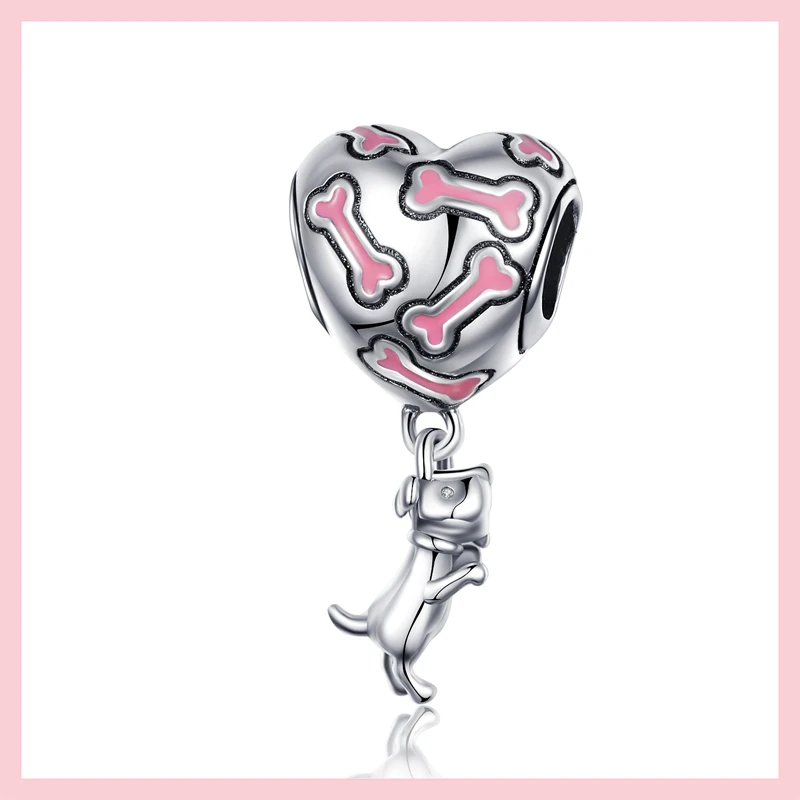 Подвеска в виде кости собаки и сердца, подходит для оригинального браслета Pandora, сделай сам, подарок для изготовления ювелирных изделий