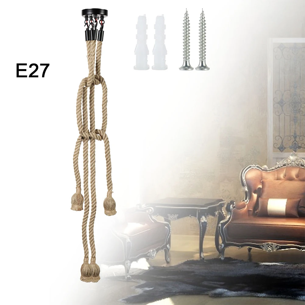 Подвеска в ретро стиле, 200-240 В, 4 лампочки, подвесная желтая конопляная веревка IP20, натуральная конопляная веревка IP20