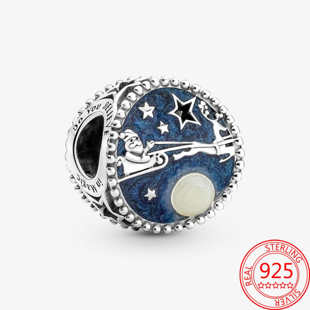 Подвеска для браслета и браслета, серебро 100% пробы, синяя звезда, Луна, Санта и олень