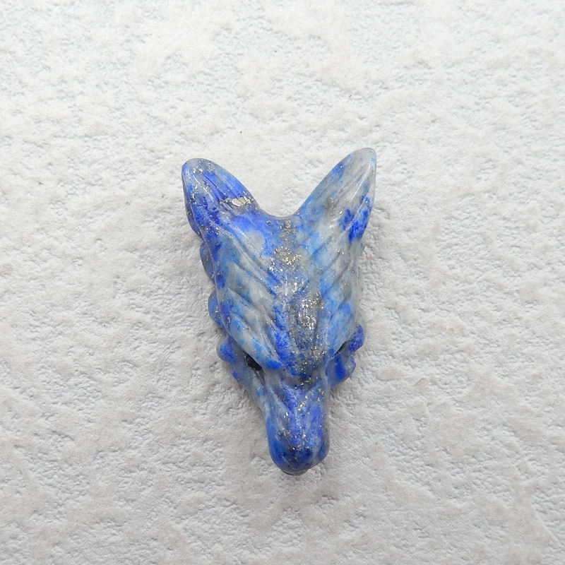 Подвеска из драгоценного камня 26x16x10 мм г с резной головой волка лазурита