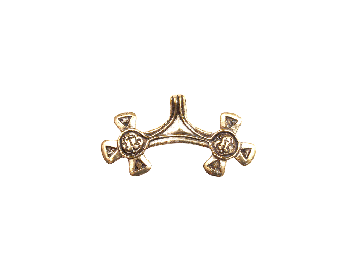 Ср.вес:6г.Киевская лунница оберег женского здоровья, пожелание плодородия. Оберег обладает способностью защищать владельца от разных бедствий, в частности, от происков недоброжелательных духов. Лунница испокон веков является оберегом женского здоровья. Считается, что она предотвращает развитие различных заболеваний, способствует легкому течению беременности, уменьшает боль при родовых схватках. Процветший крест - один из самых распространенных и почитаемых на Руси символов животворящего Креста Господня. Лунница эпохи Киевской Руси. III - IV вв.