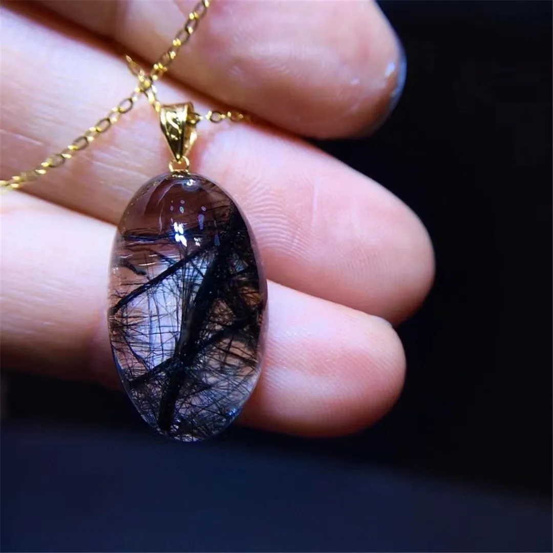 Подвеска из натурального черного кварца с рутилированными волосами, ювелирное изделие из 18-каратного золота для женщин и мужчин, Подарочный камень с прозрачными кристаллами, бусины 20x12 мм, драгоценный камень AAAAA