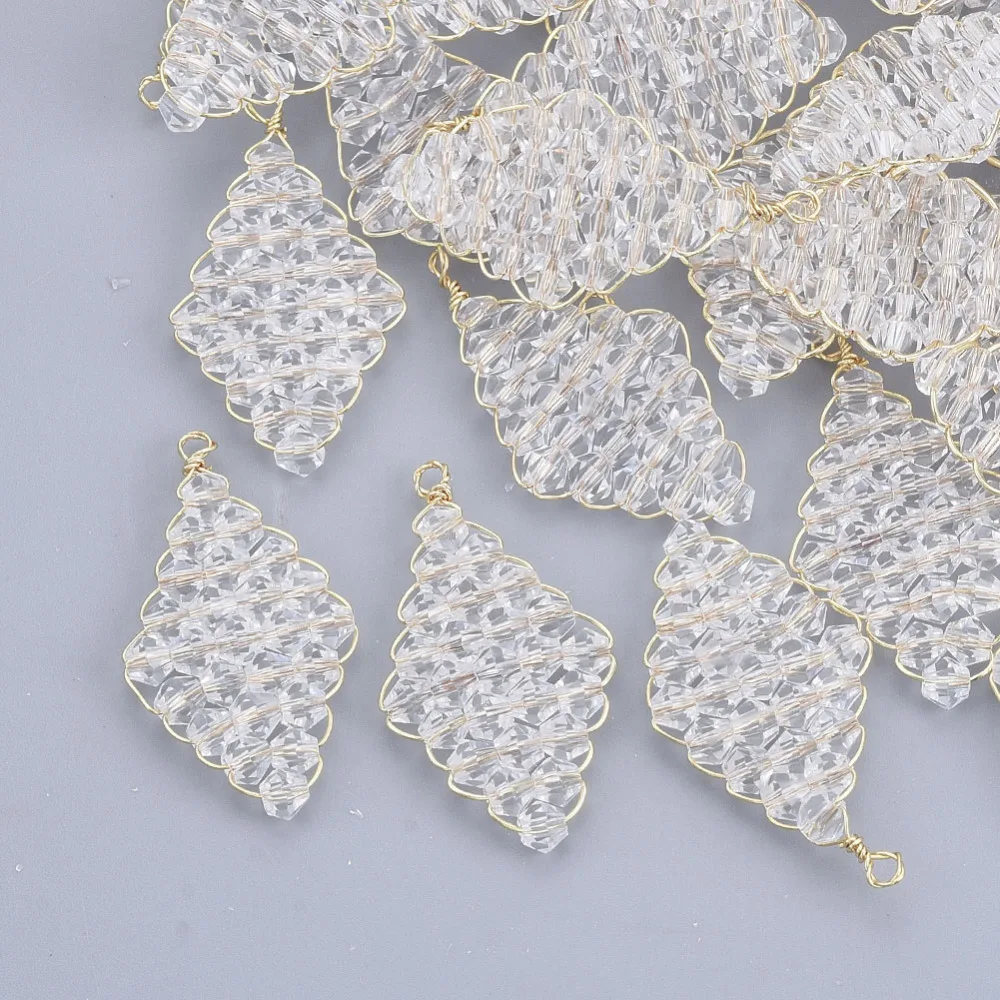 Подвеска из прозрачного стекла, ромбовидные Подвески проволоки, для изготовления ювелирных изделий, аксессуары для ожерелья, с латунной пр...