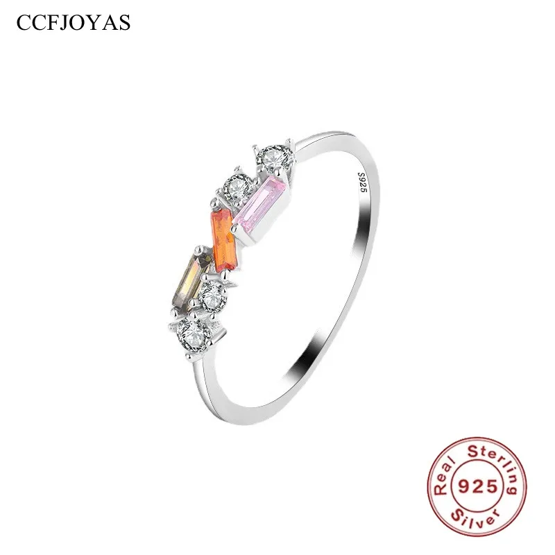 CCFJOYAS 925 Sterling Silver Irregular Colorful Zircon CZ Ring for Women Fashion Finger Ring Stackable Band Rings Fine Jewelry