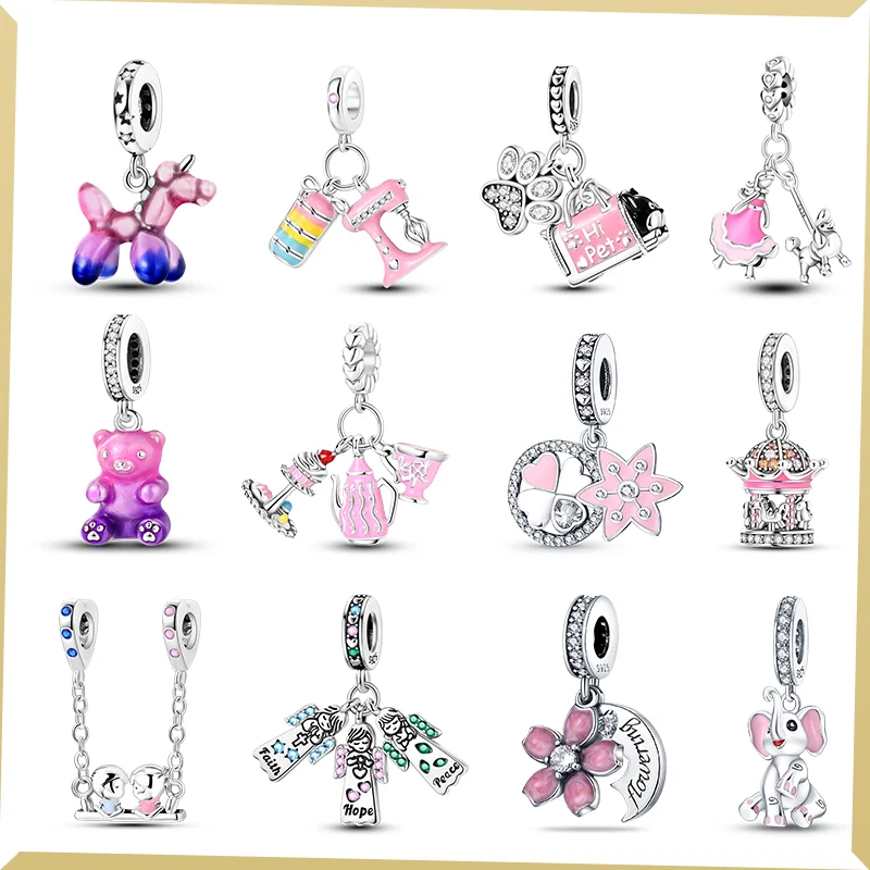 Подвеска из серебра 925 пробы в виде розового кота с воздушным шаром для браслета Pandora