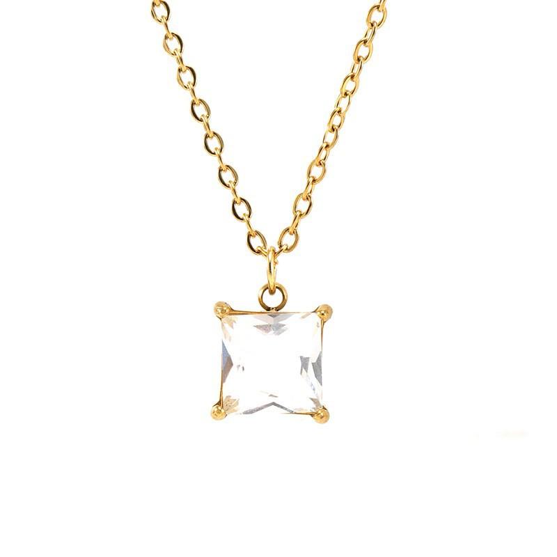 Подвеска из титановой стали с цирконием, цепочка на ключицу, ожерелье из нержавеющей стали 18 карат с квадратной инкрустацией цирконием 18K