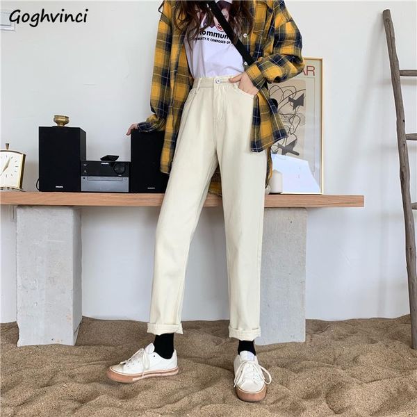 women's jeans women loose high waist simple straight denim trousers female ankle-length all-match vintage preppy style teens retro chic, Blue