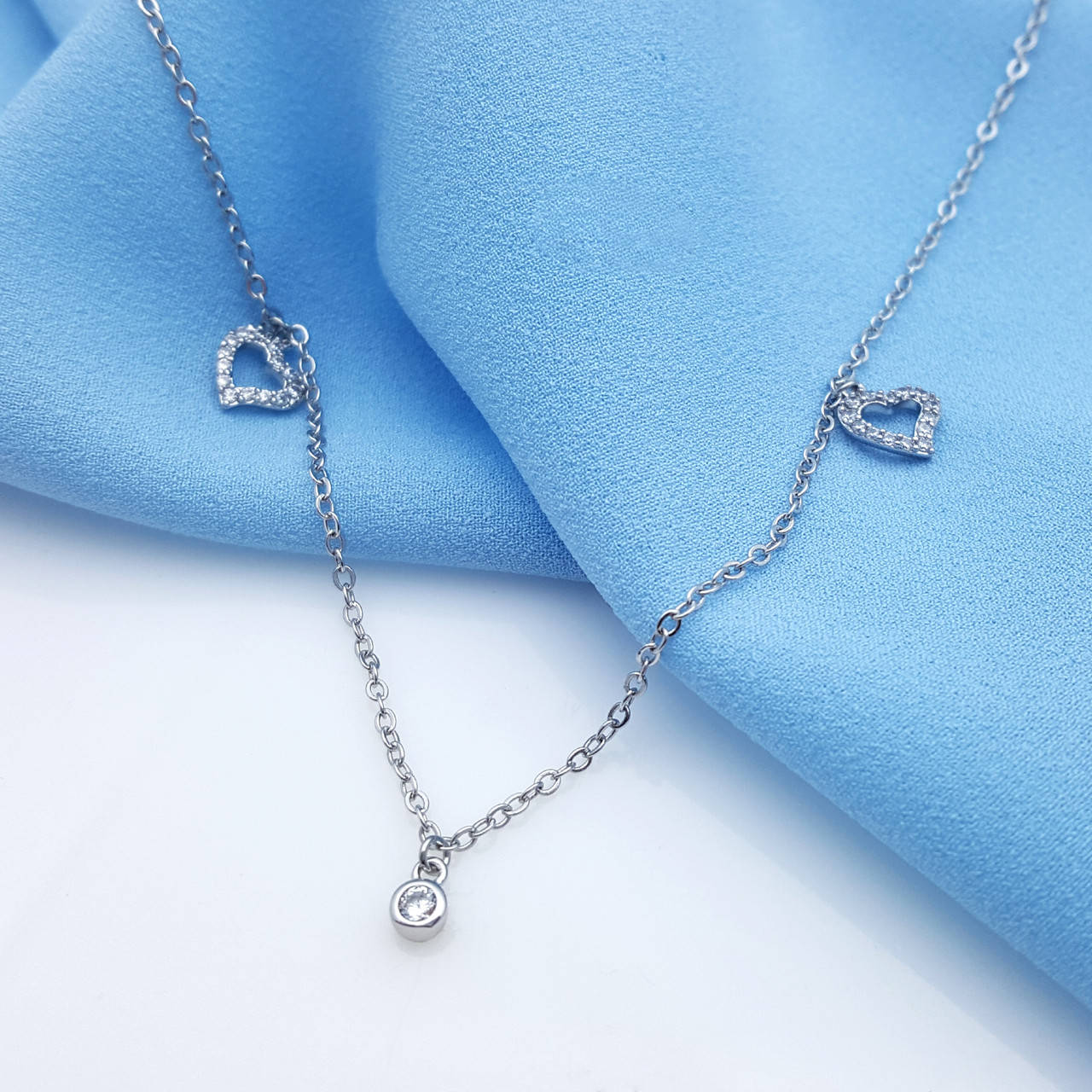 Подвеска, родий, два сердечка с камешком, р.40-45, Xuping