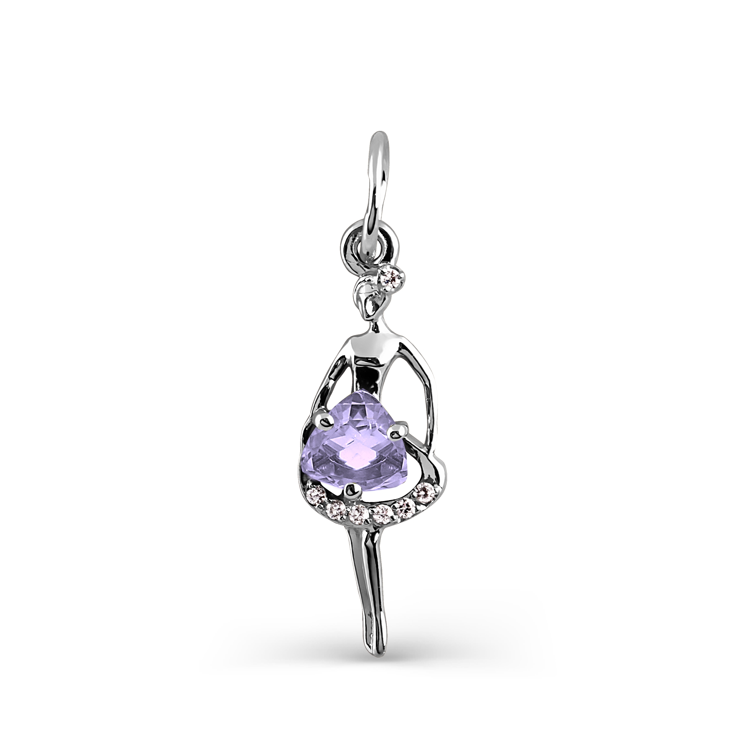Подвеска из белого золота 585 пробы с аметистом и бесцветными фианитами (арт. Т303033439).