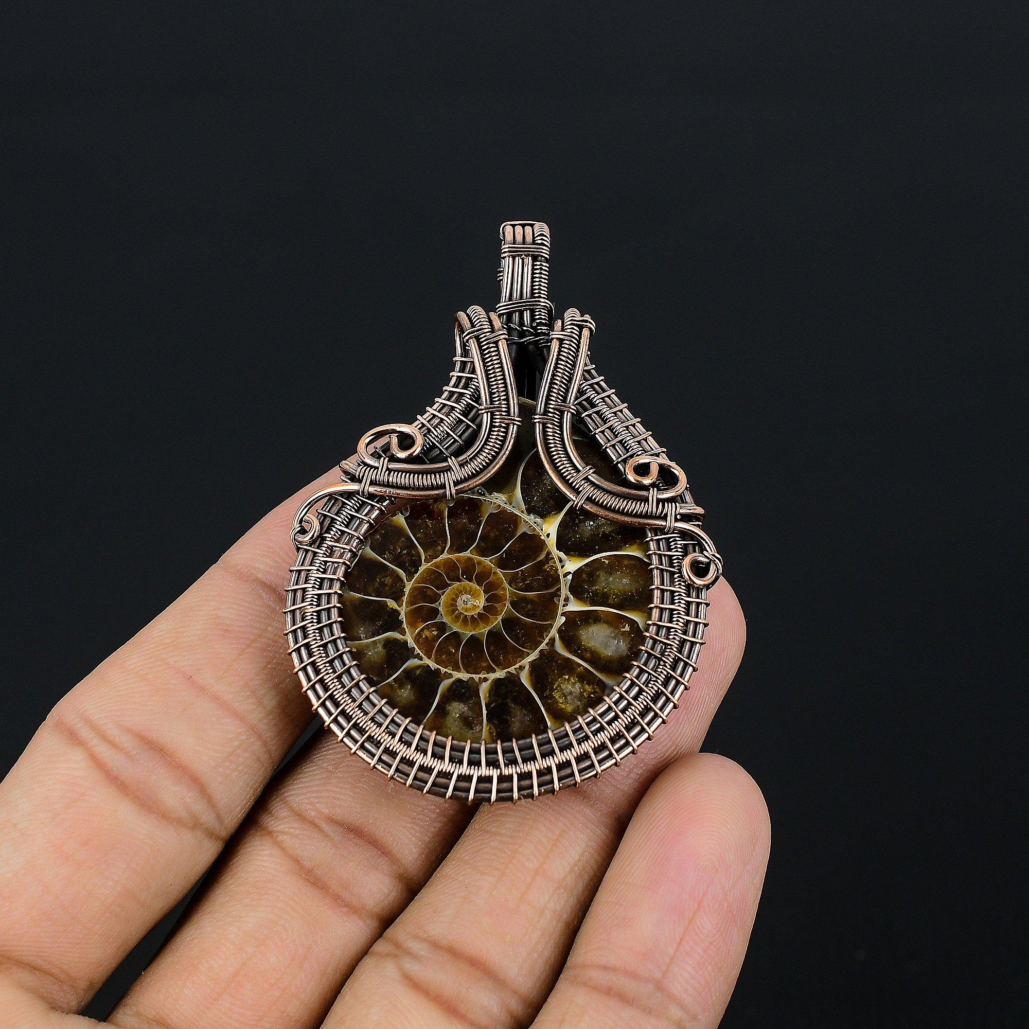 Подвеска с окаменелостью аммонита, обернутая медной проволокой 999 пробы, подвеска из драгоценного камня ручной работы на День памяти 2.55 Inches