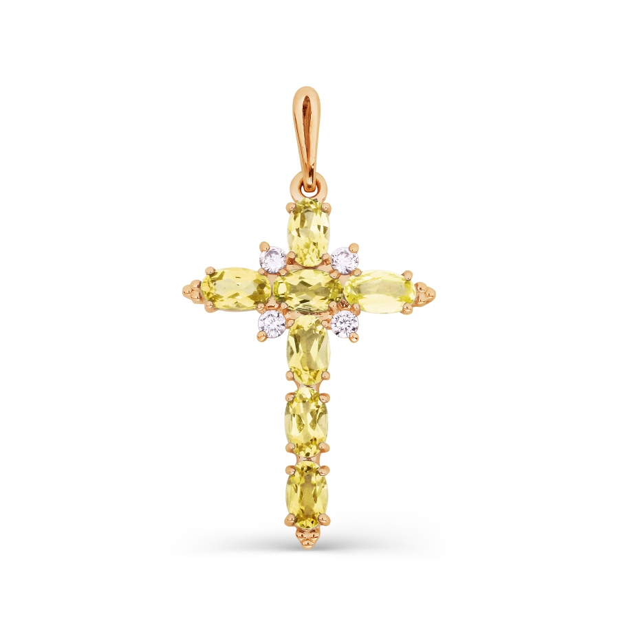 Подвеска из красного золота 585 пробы с цитрином и бесцветными фианитами (арт. Т10306596).