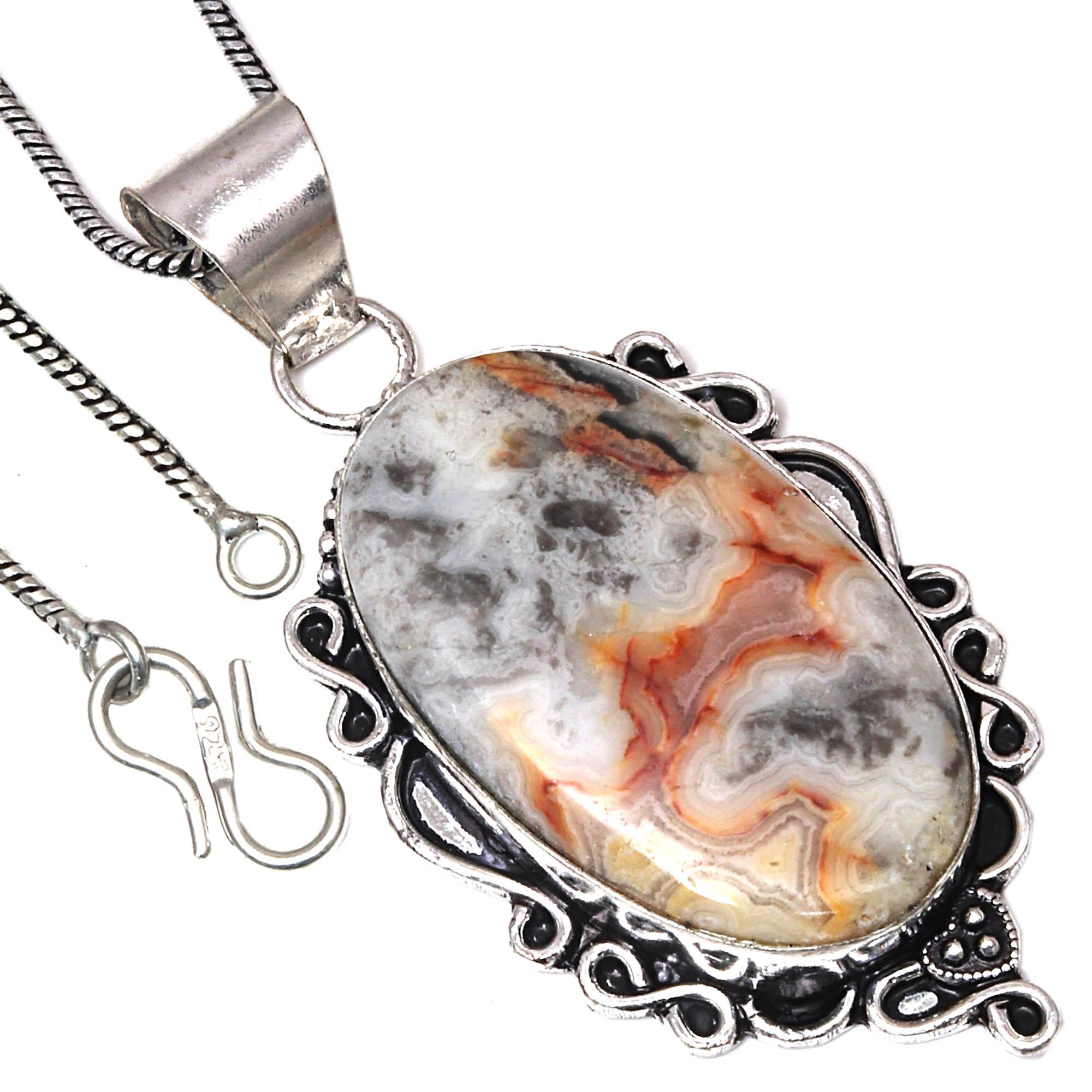 Подвеска Crazy Lace Agate Gemstone Valentine Day Ethnic Silver Jewelry 2
