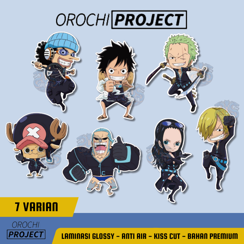 Sticker Stiker Anime Chibi Fullbody Cute One Piece Film Gold Vinyl Glossy Anti Air HP Laptop Tumbler Motor Helm