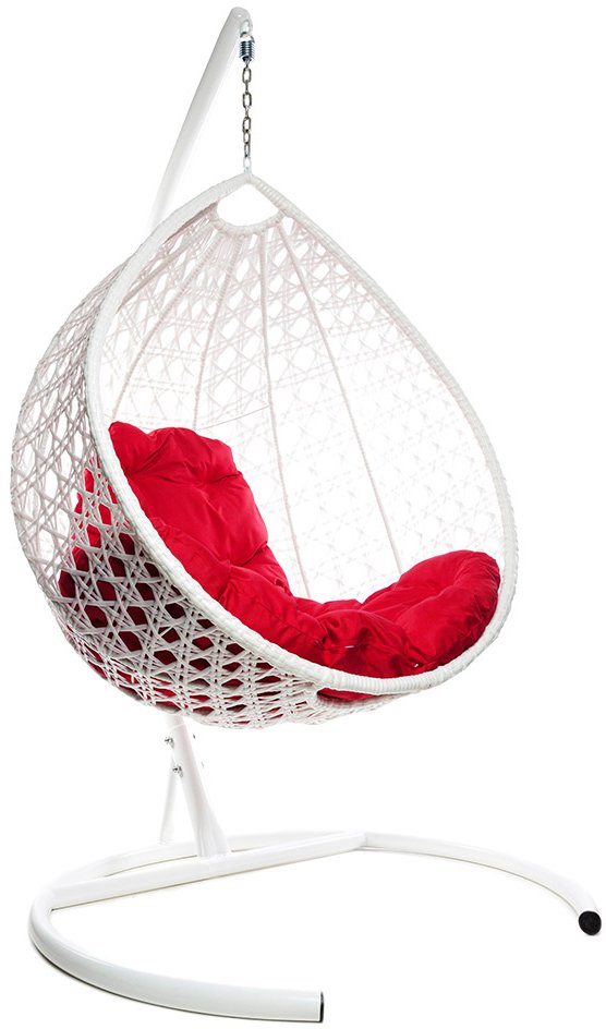 Подвесное кресло M-Group Капля Люкс 11030106 (белый ротанг/красная подушка)