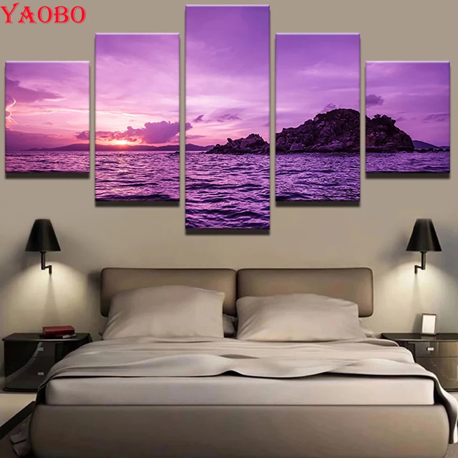 5 панельных алмазов, фиолетовый закат, морской пейзаж, картина 5d, алмазная вышивка «сделай сам», полная квадратная/круглая бриллиантовая кар...