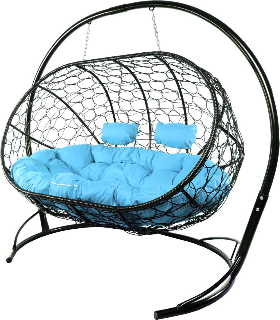Подвесной диван M-Group Лежебока 11180403 (с черным ротангом/голубая подушка)