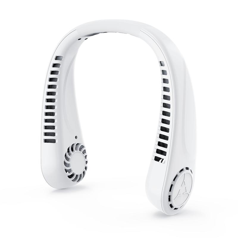 Подвесной шейный вентилятор Портативный вентилятор с воздушным охлаждением USB Безлопастной перезаряжаемый мини-вентилятор Вентиляторы с объемным шейным ремешком на 360°, путешествующие на открытом воздухе белый