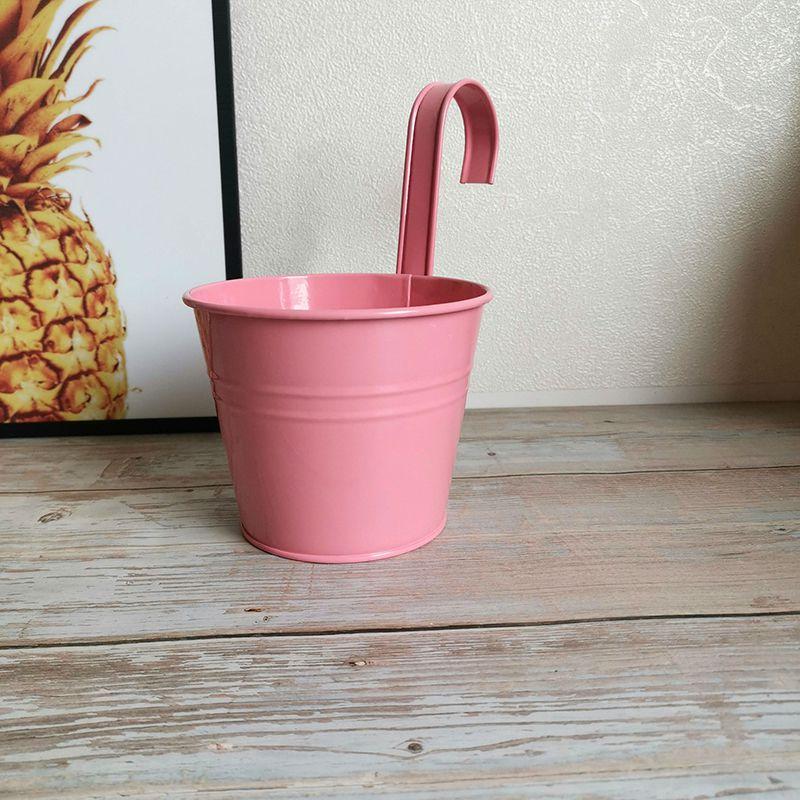 Подвесные металлические цветочные горшки Ведро для растений Держатель Декор для садовой ограды Крючок Съемный Pink