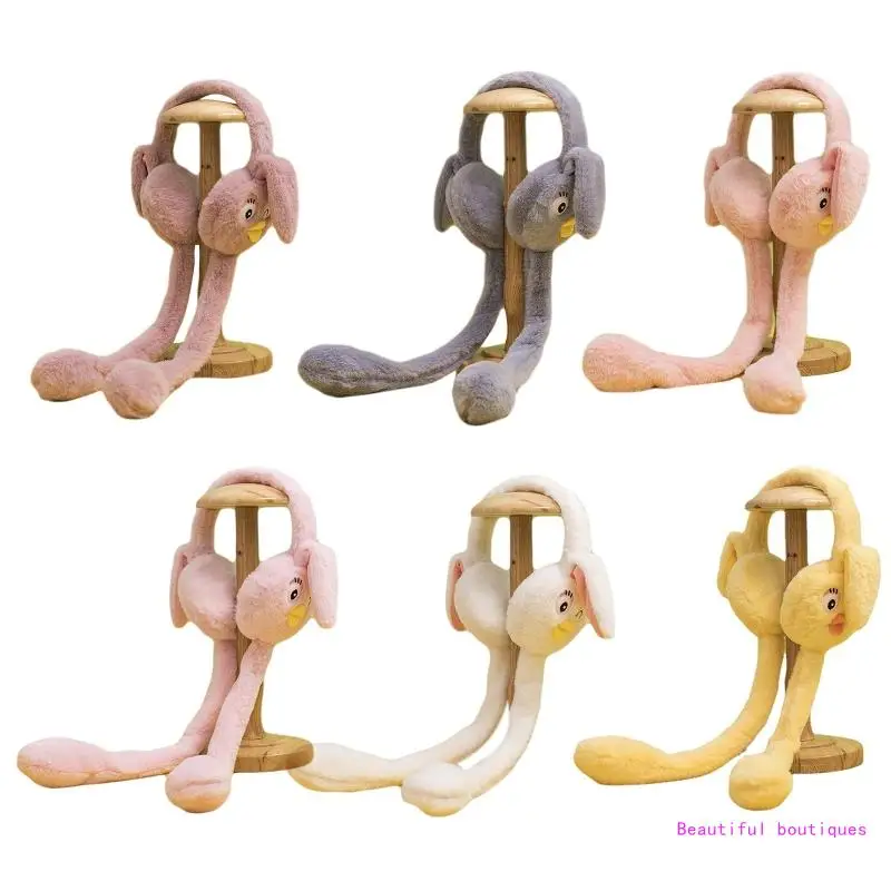 Подвижные наушники для женщин, наушники с прыгающим кроликом, наушники с кроликом, грелки для ушей для детей, меховые наушники,