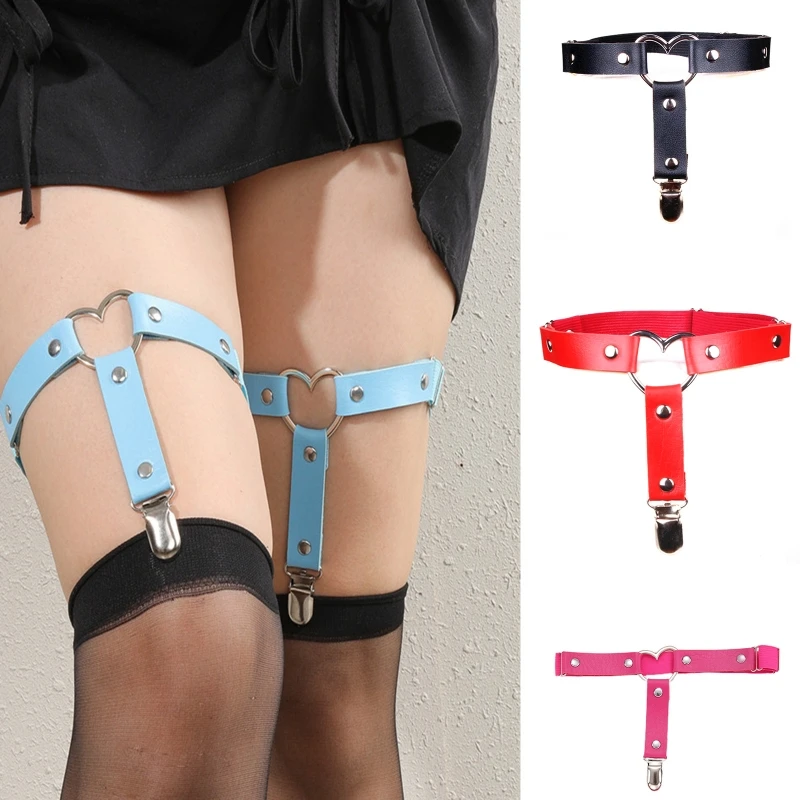 Подвязка для ног в стиле панк, ремень для чулок для девушек, аксессуар для тела с маленьким сердцем X4YC