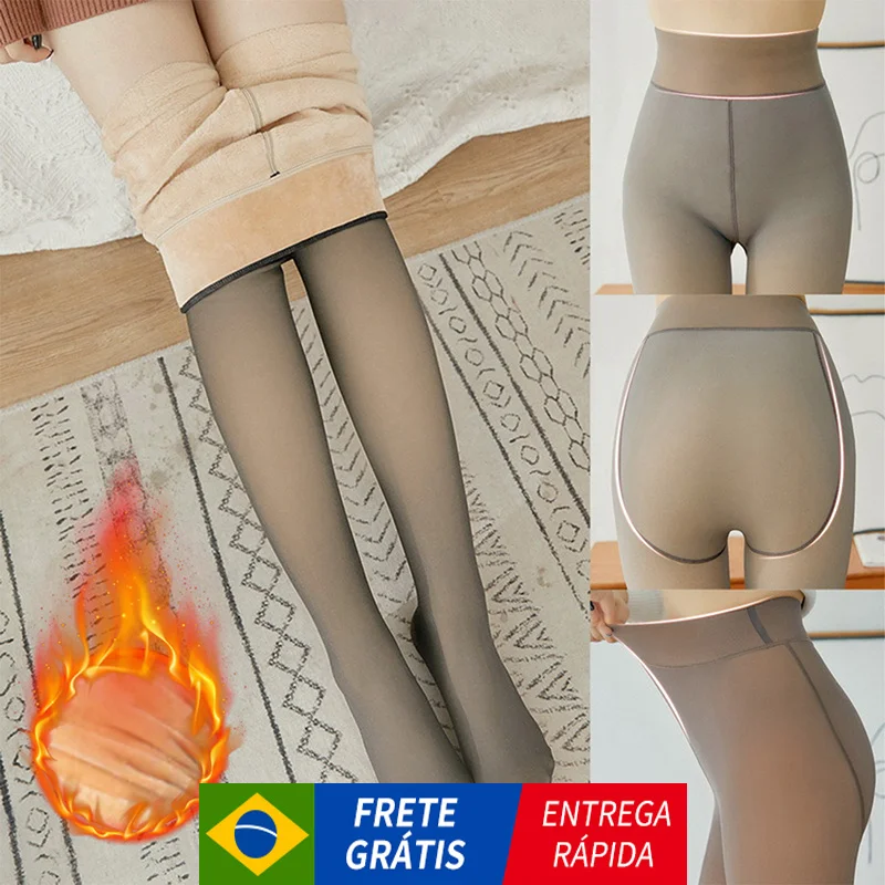 Поддельные полупрозрачные колготки, Теплые Зимние флисовые Колготки для женщин, ТЕРМОколготки с прозрачным эффектом